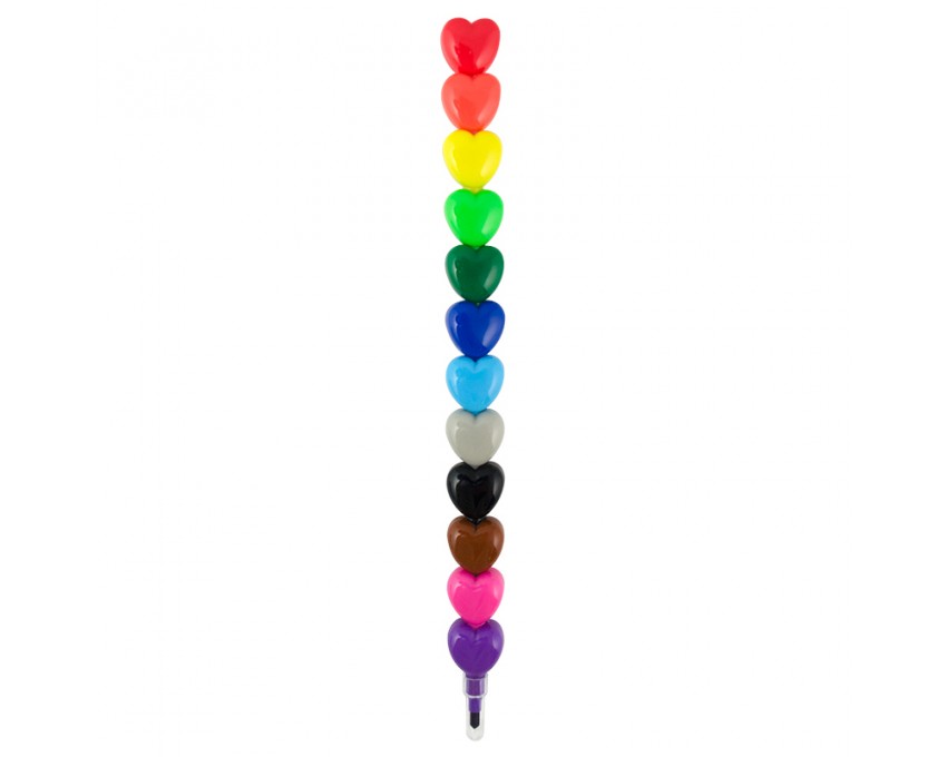 Każde serduszko może być pojedynczą kredką lub można je połączyć z innymi serduszkami tworząc swoją wyjątkową kredkę. Możesz, także mieszać i przekładać serduszka ze swoimi przyjaciółmi, aby tworzyć śliczne mniejsze lub większe serduszkowe kreacje.