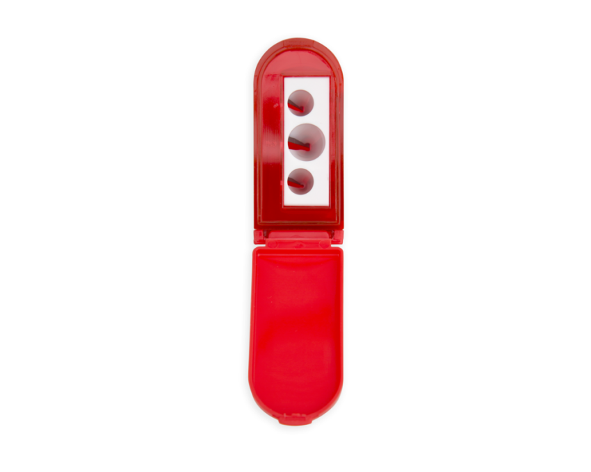 • 3 różnej wielkości otwory do 3 różnych grubości ołówków.