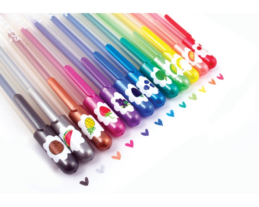 Pysznie Owocami Pachnące Brokatowe Długopisy Żelowe sprawią, że każdy obrazek, notatki będą cudownie wyglądać i pachnieć.