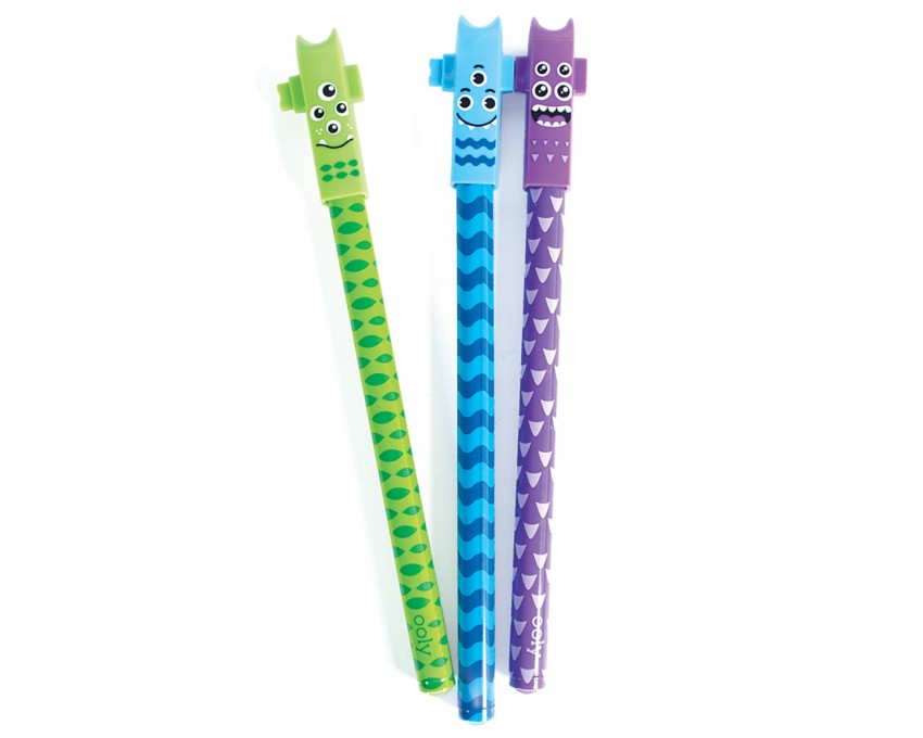 śliczne, zabawne i żelowe długopisy w kształcie potworów;