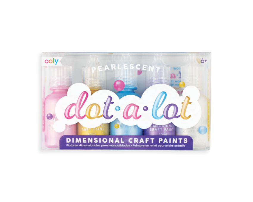 Stwórz kolejny obraz lub rękodzieło wyróżniając je dosłownie i w przenośni Farbami Kropkowymi Dot-A-Lot! Zestaw 5 perłowych kolorów sprawi, że Twoje dzieło będzie błyszczeć jak perły. Farby dają efekt 3D, kropeczki po wyschnięciu nie są płaskie lecz jak bańka dając efektowny, błyszczący, perłowy rezultat.